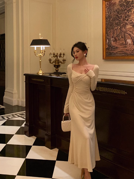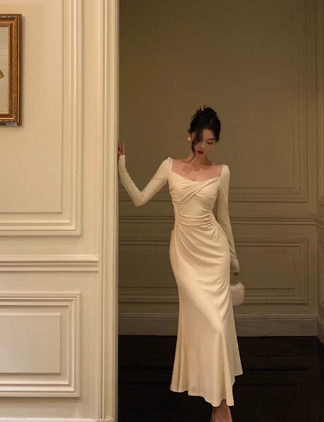 Sexy Mermaid Square Neck Long Sleeves 21st Birthday Dress Party Gown Birthday Outfits Birthday Dress Ideas For Women DP2314