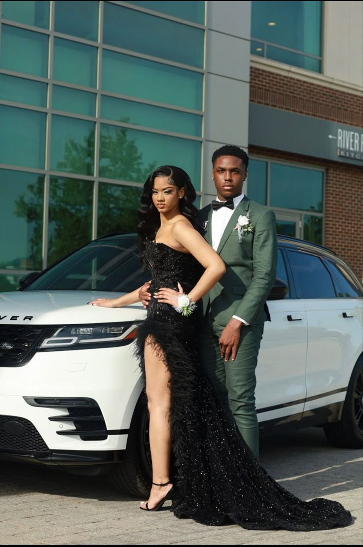 Sexy Mermaid Strapless Black Sequin Sleeveless Long Prom Dresses Party Dress Black Girl Birthday Outfits Graduation Dresses W0448