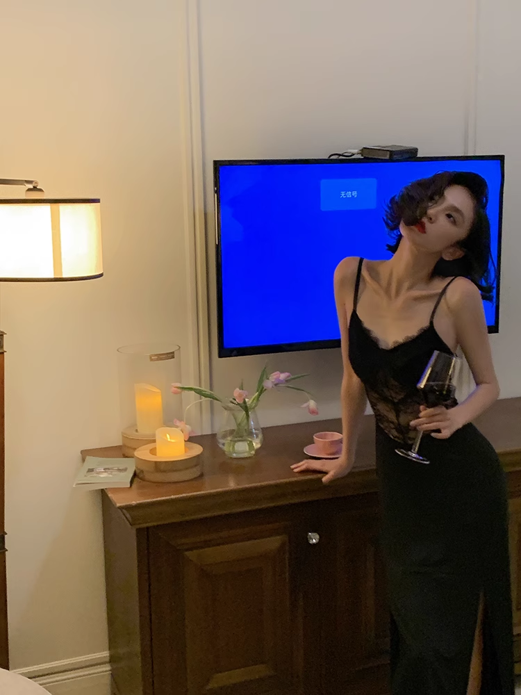 Sexy Mermaid Straps Black Lace Prom Dress 21th Birthday Outfits P683