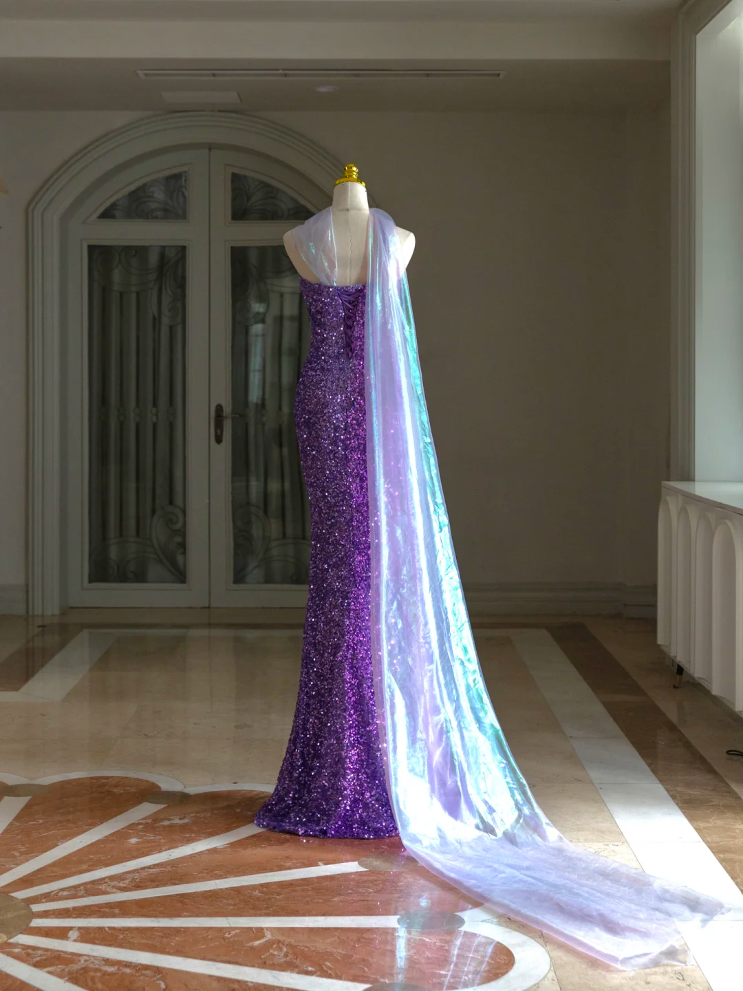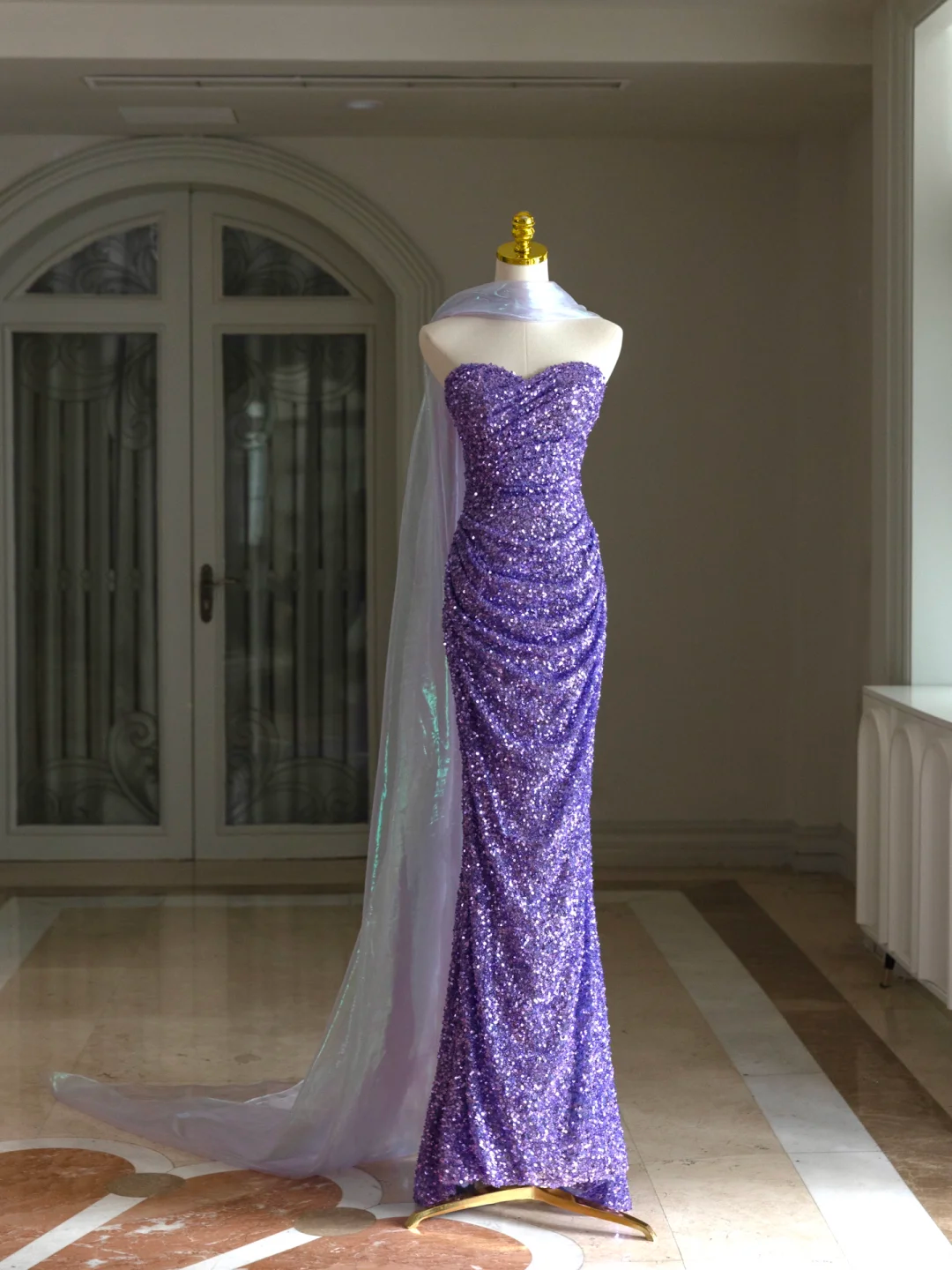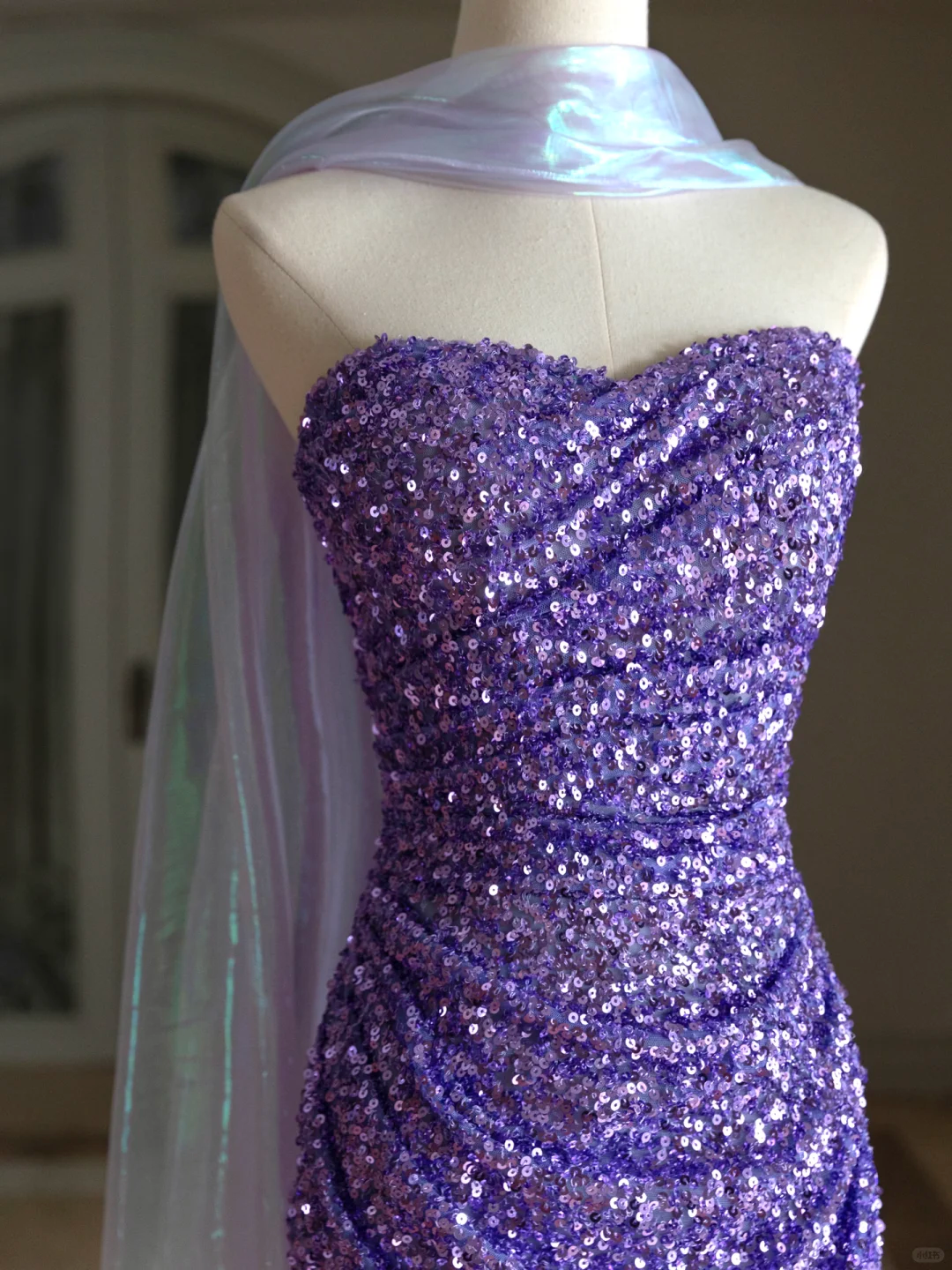 Sexy Mermaid Sweetheart Grape Sequin Long Prom Dresses Party Dress 20th Birthday Outfits Graduation Dresses DH1557