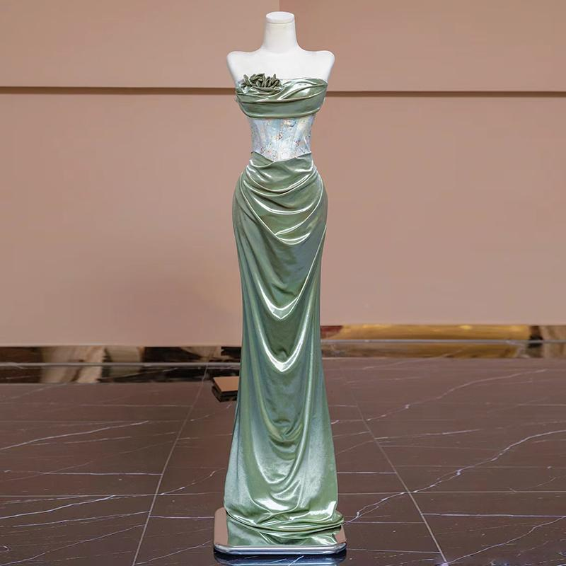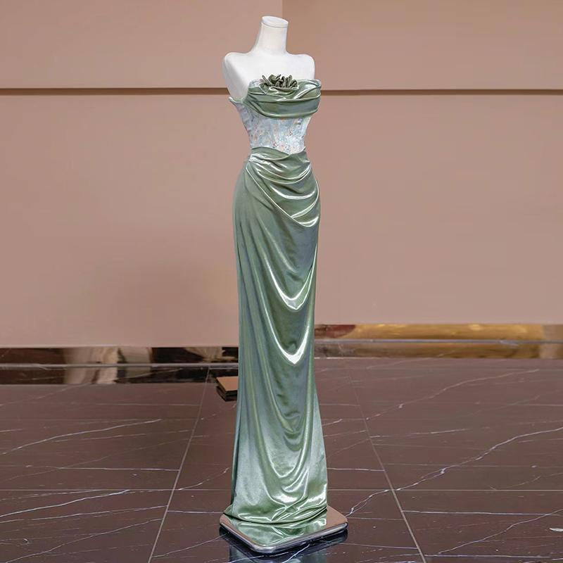 Sexy Mermaid Sweetheart Green Long Evening Dress Satin Prom Dresses SD1494
