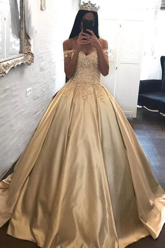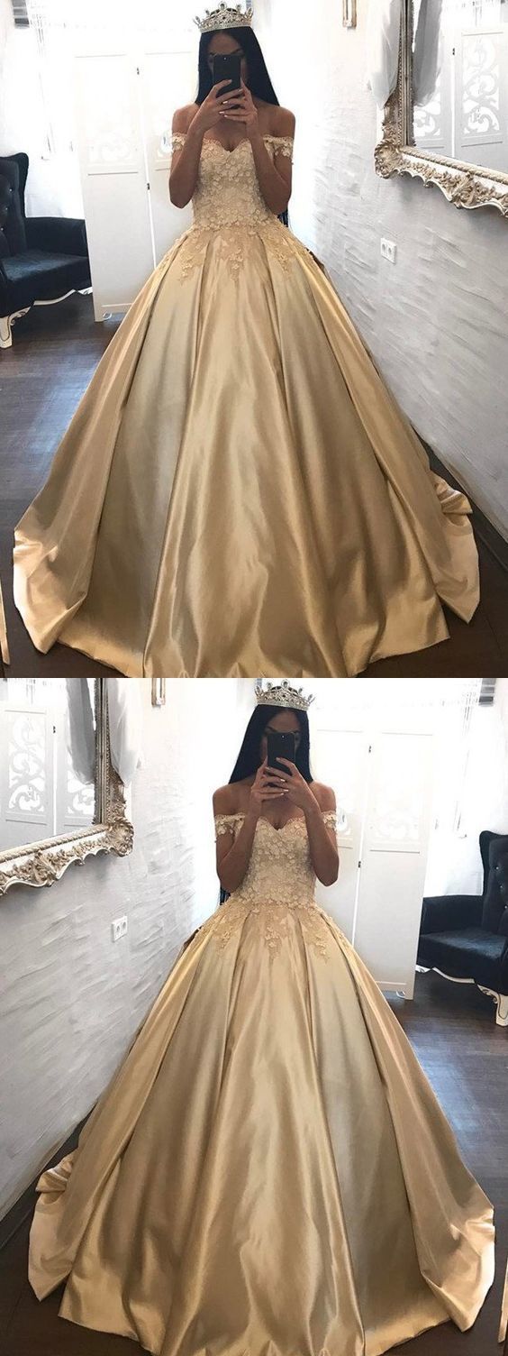 Sexy prom dress, satin long prom dress, gold prom dress, off shoulder ball gown cg636