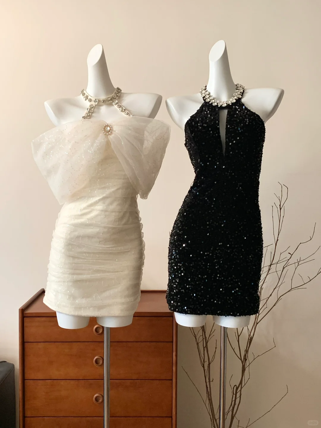 Sexy Sheath Halter Rhinestone Black Sequin Short Mini Homecoming Dress Cocktail Dress SH3152