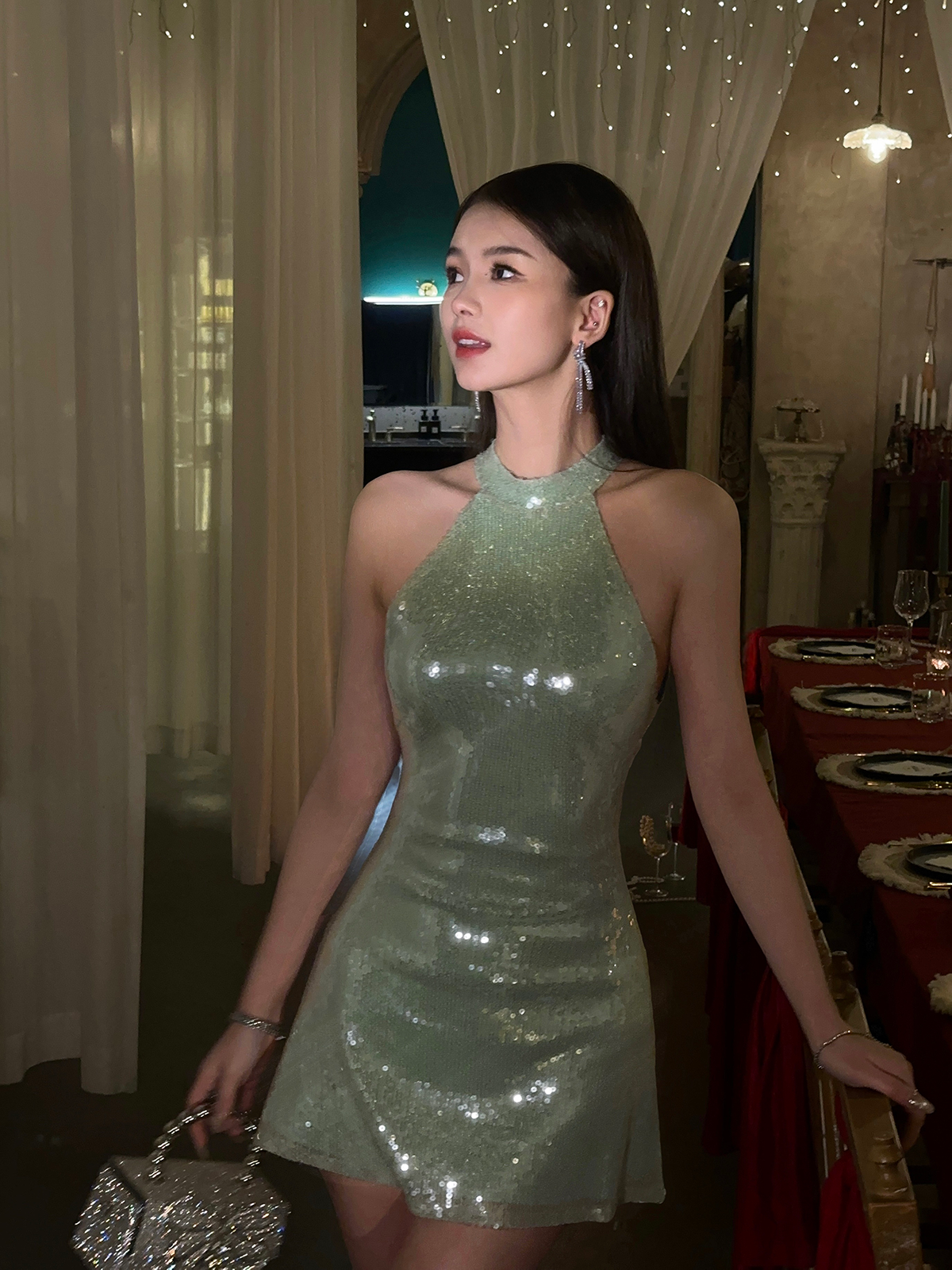 Sexy Sheath High Neck Sequin Mint Green Mini Short Formal 8th Grade Homecoming Dresses Summer Middle School Hoco Dress Birthday Outfits DH1098