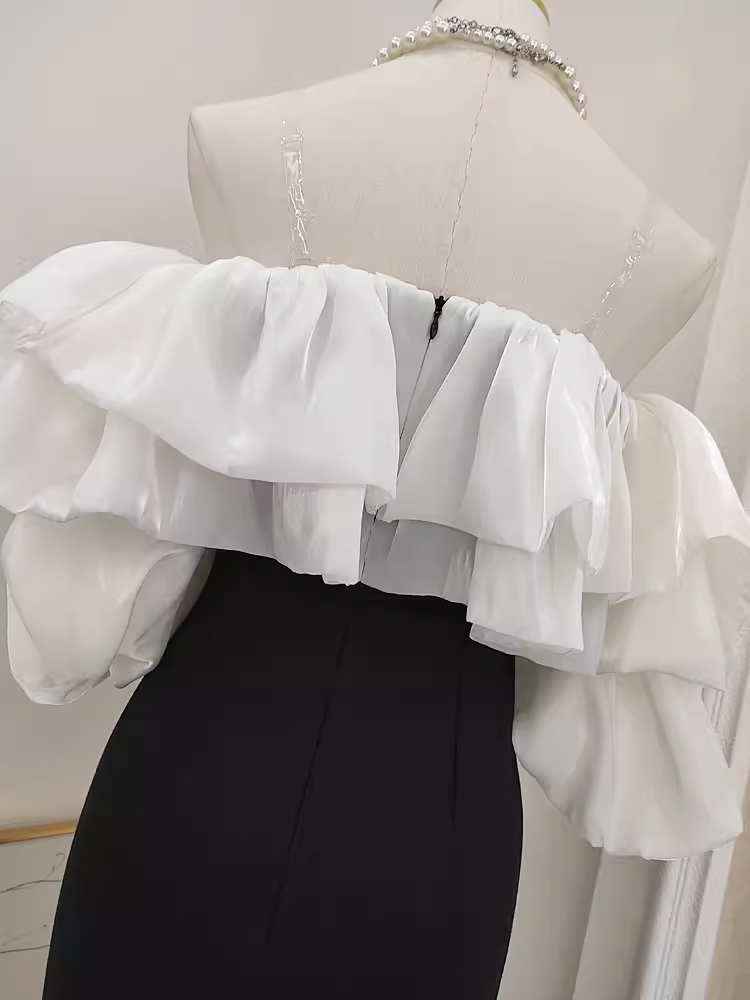 Sexy Sheath Off The Shoulder Black Vacation Dress Satin Women Dresses SD163
