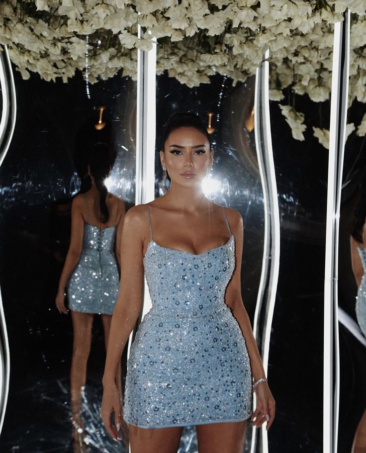 Sexy Sheath Sequin Blue Short Formal Homecoming Dress Middle School Short 16th Birthday Outfits Graduation Dress Cocktail Dresses DH2224
