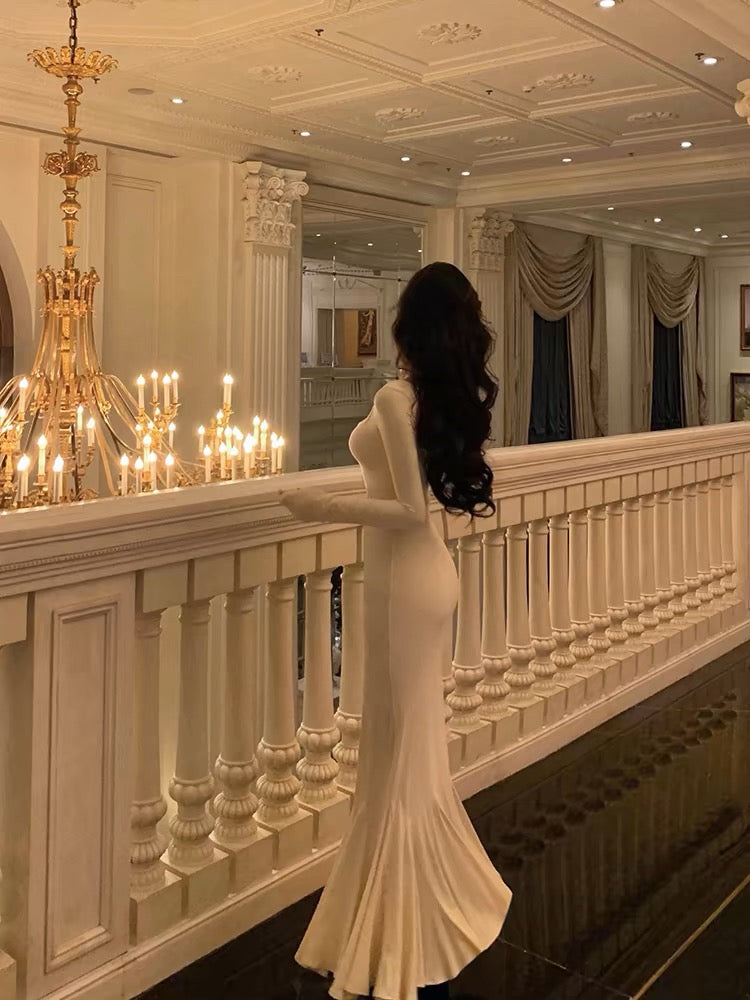 Sexy Sheath Square Neckline Ivory Long Prom Dresses Birthday Outfits Evening Gown SD1018