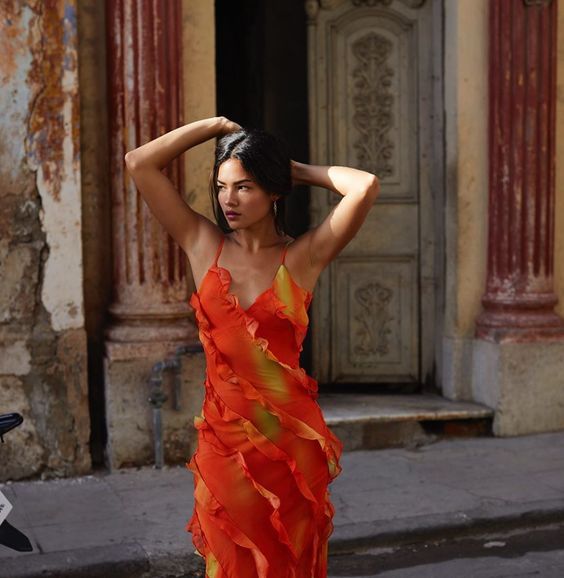 Sexy Sheath Straps Chiffon Long Tiered Prom Dress P1751