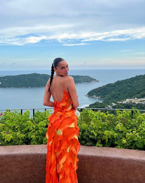 Sexy Sheath Straps Chiffon Long Tiered Slit Prom Dress P1752