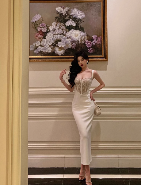 Sexy Sheath Straps White Lace 18th Birthday Dress Long Party Birthday Outfits For Women DP0156