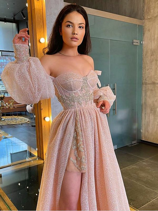 Sexy Sweetheart Side Slit A-line Sequin Long Prom Dresses fg4135