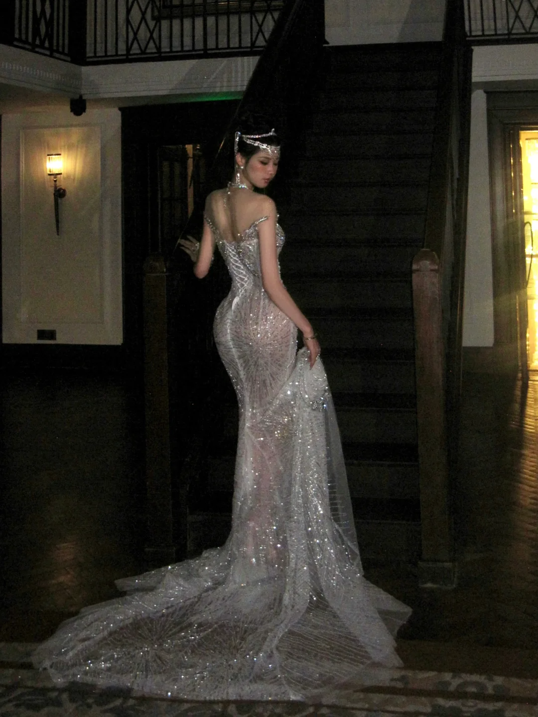 Sexy Wedding Dress Mermaid Sequin Beads Long Silver Wedding Dresses Bride Dress Bridal Gowns WD068