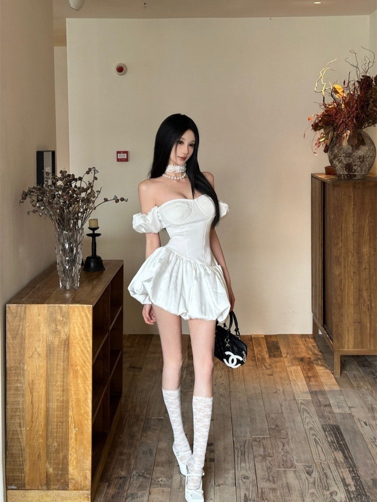 Sexy White Off Shoulder A-Line Satin Short Prom Dresses Homecoming Dress ED02655
