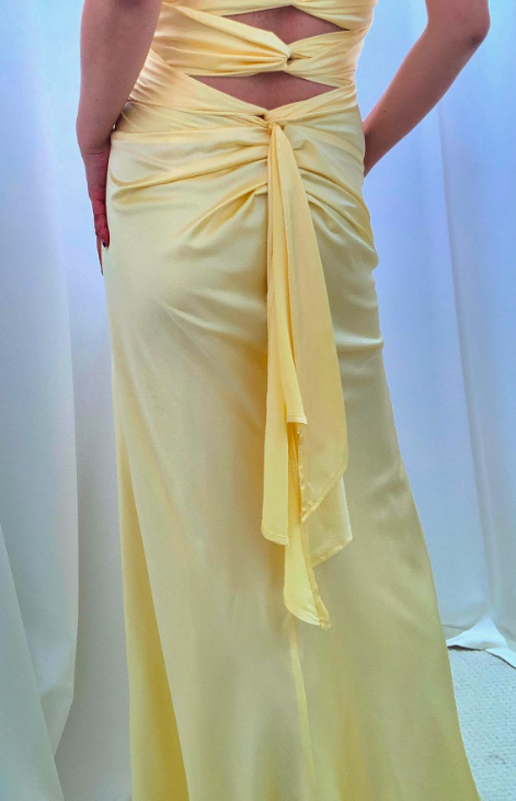 Sexy Yellow Backless Satin Sheath Spaghetti Strap V-Neck Party Dress Prom Dress ED02045