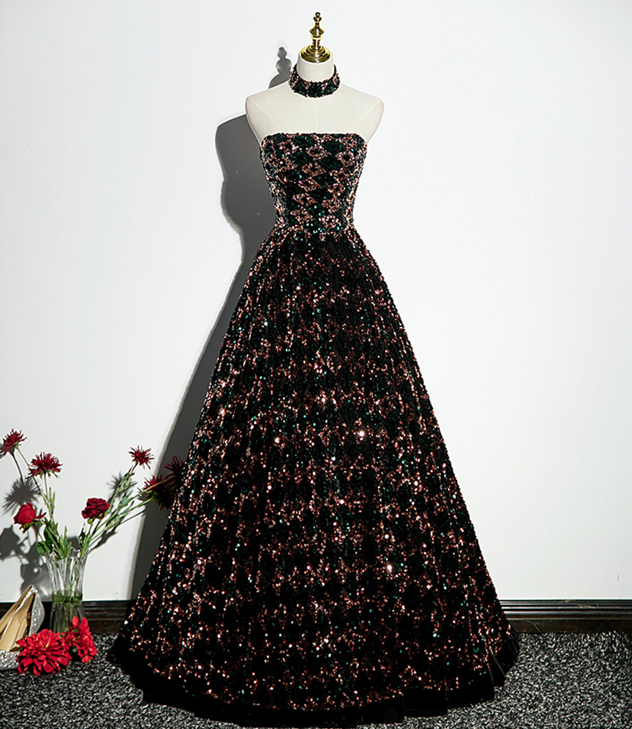 Shiny A Line Strapless Sequins Long Prom Dress Evening Dress SH1717