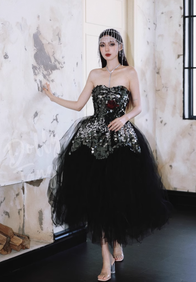 Shiny Black Sequin A Line Sweetheart Neck Tulle Homecoming Dress Cocktail Dress SH3580