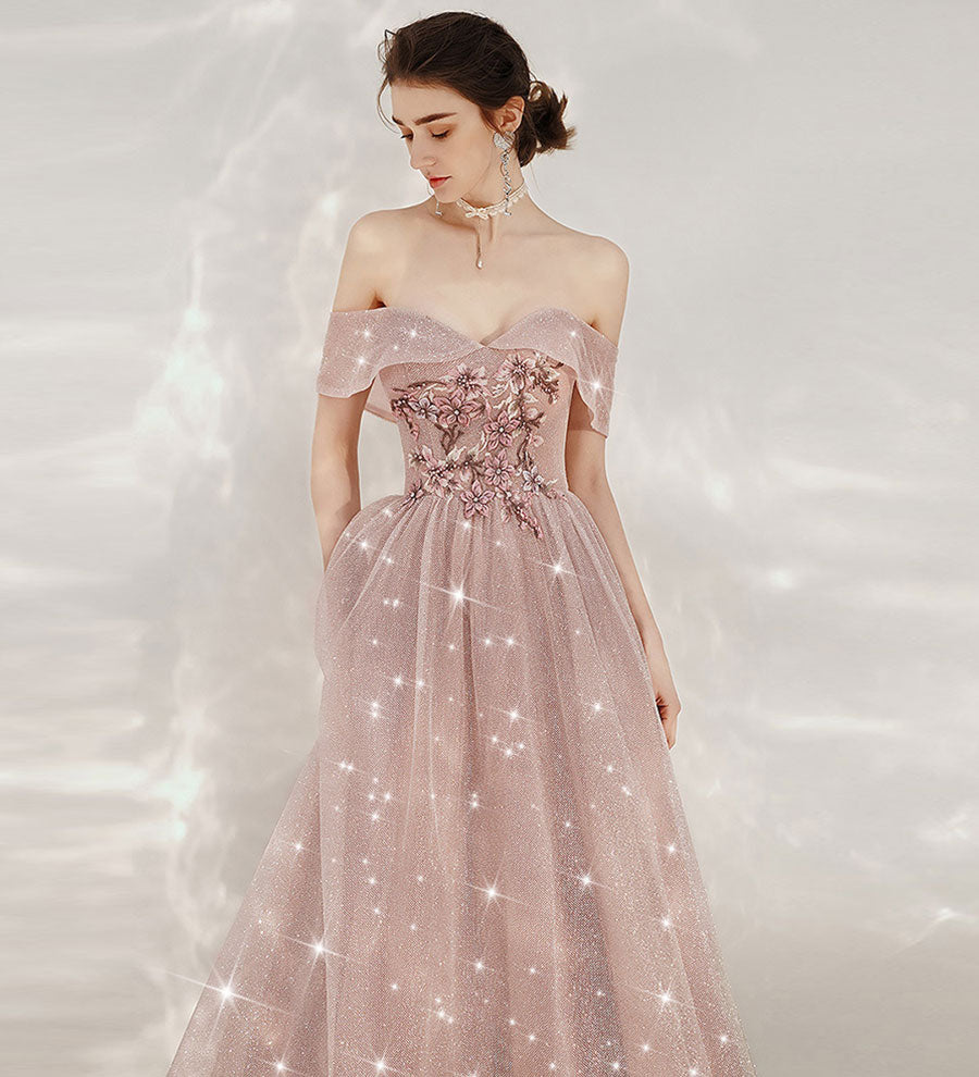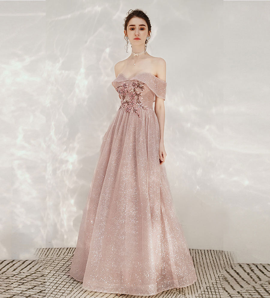 Shiny sequins prom dress pink evening dress