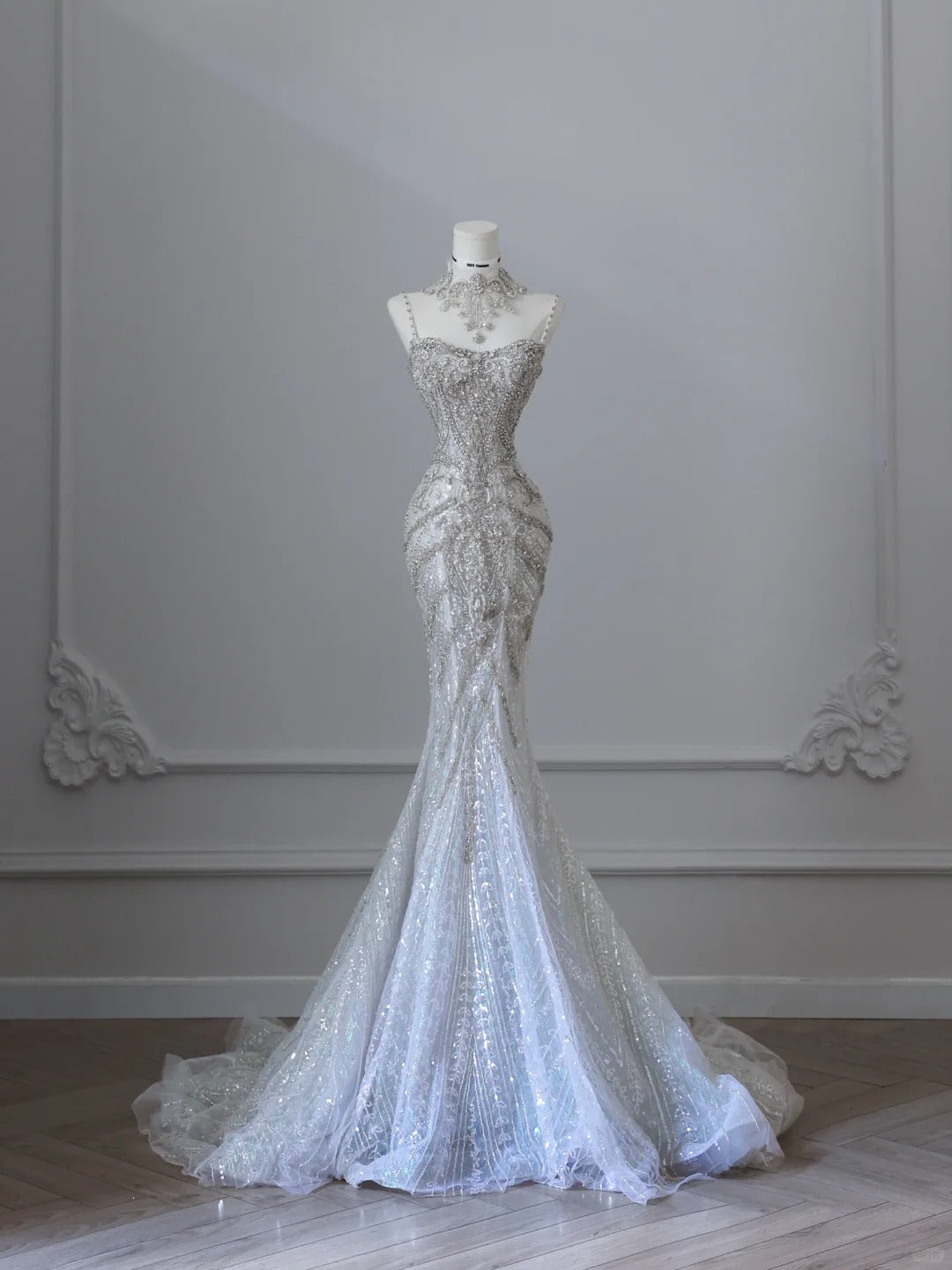 Shiny White Strapless Mermaid Luxury Wedding Dress P2520