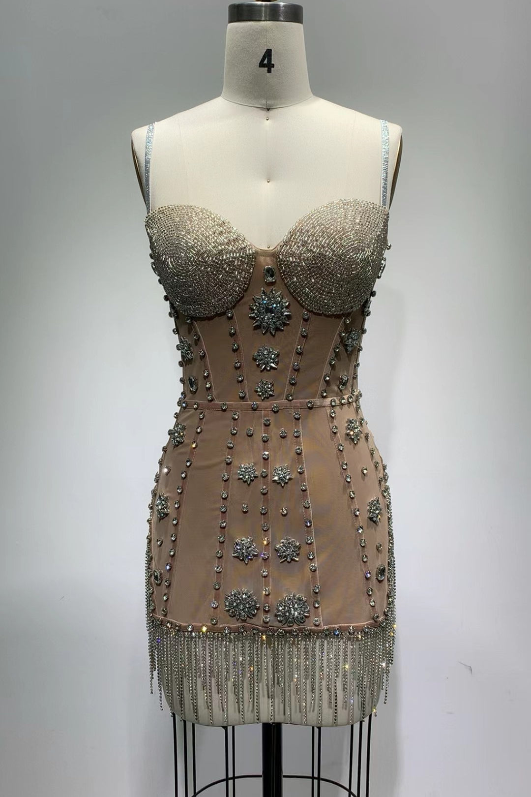 loveedsTM-Silver short strappy dress with a tube top-vx