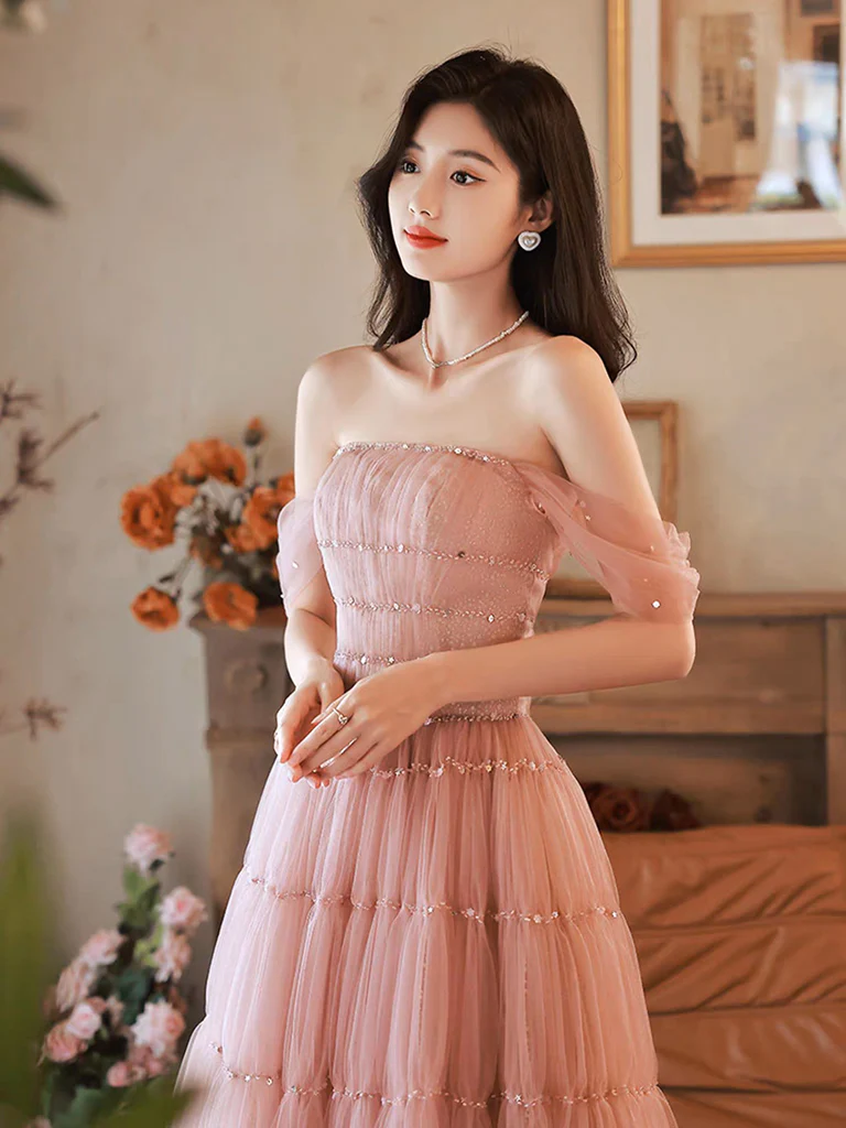 Simple A-Line Pink Off Shoulder Long Prom Dress P741