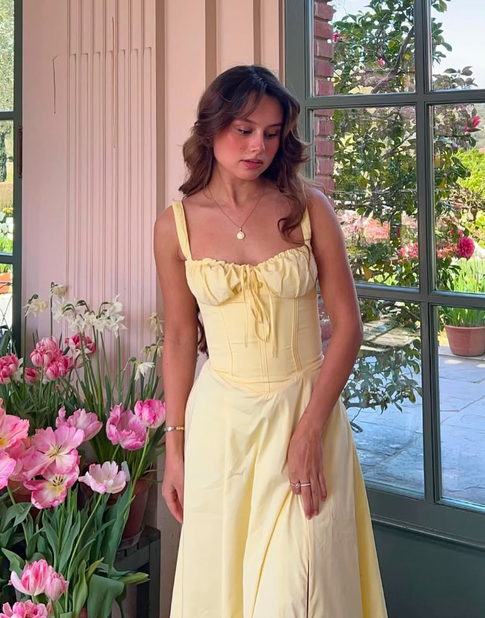 Simple A Line Spaghetti Strap Light Yellow Satin Long Prom Dress Evening Dress SH2391
