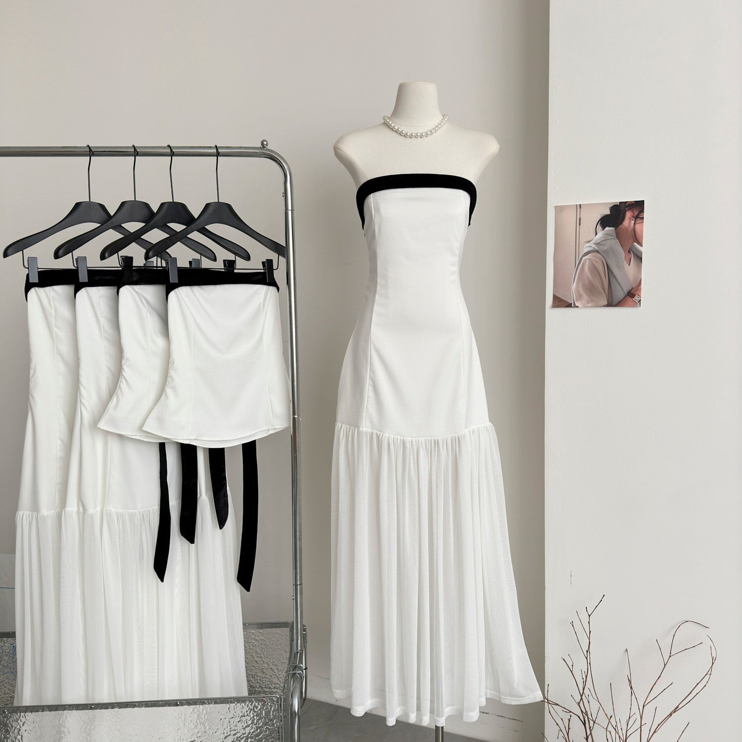 Simple A line Strapless White Tulle Summer Dress Holiday Party Dress Birthday Outfits For Teens DP0153