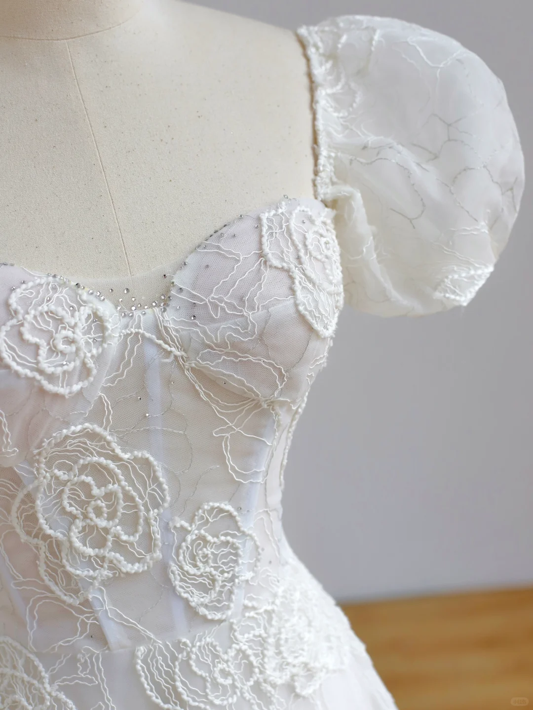 Simple Bridal Gown Ball Gown Short Sleeves Lace White Wedding Dresses Minimalist Bridal Gowns DP1532