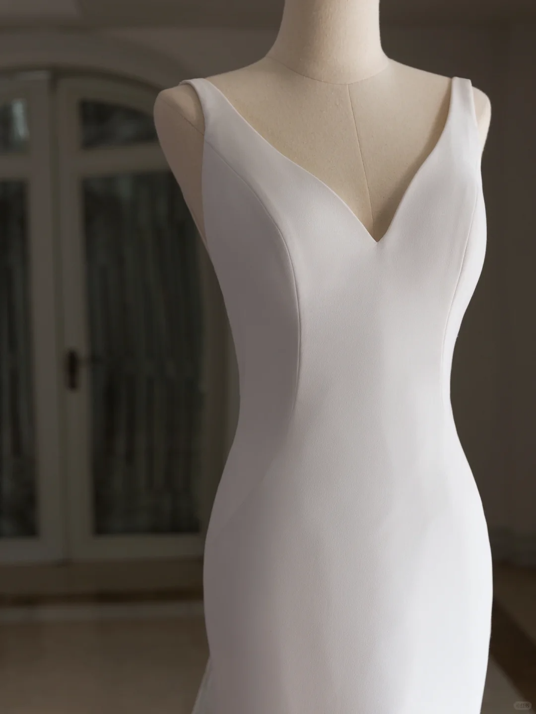 Simple Mermaid V Neck Satin White Wedding Dress Modest Wedding Dresses Princess Wedding Gowns DH1559