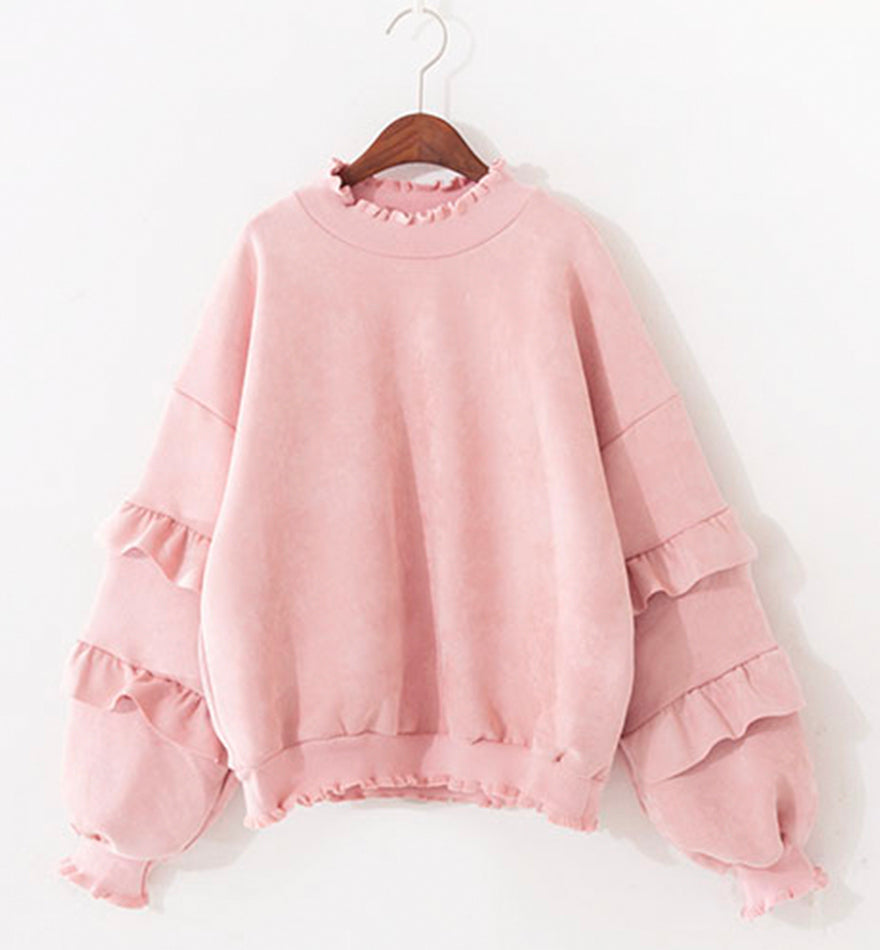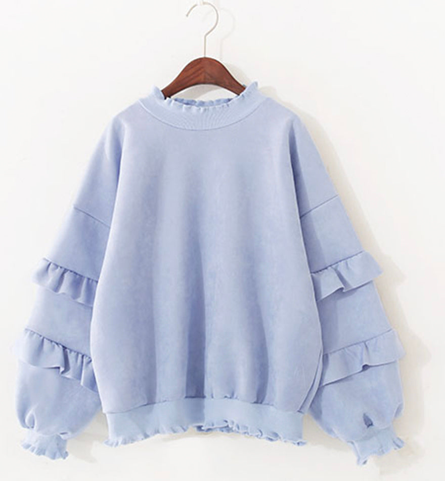 Simple round neck long sleeve tops 070