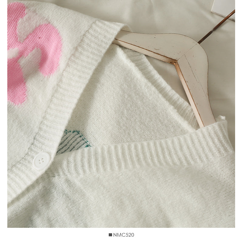 Slim low neck single breasted printed sweater women's new long sleeve versatile cardigan sweater 2082