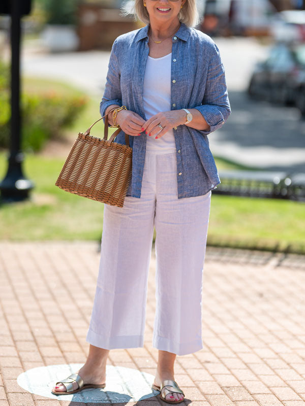 Solid Color Cotton and Linen Elegant Ladies Shirt