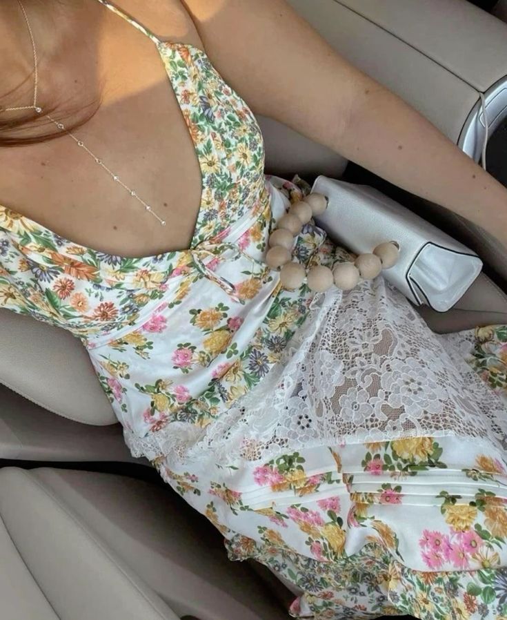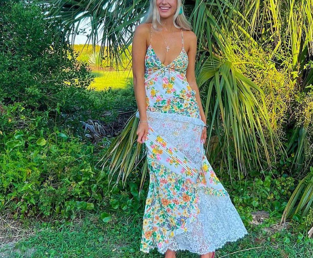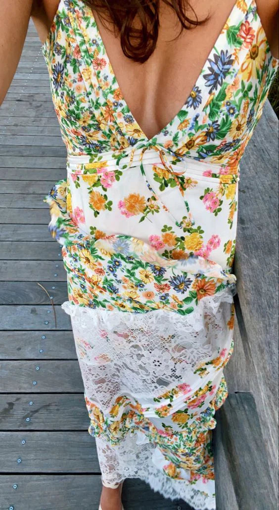 Beige light color floral spaghetti strap backless V-neck long fashionable and elegant lace prom dress evening dress party dress gh2925