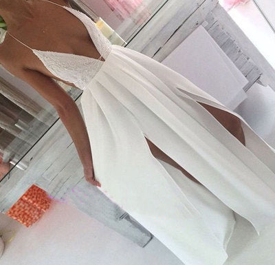 Spaghetti Straps Split Prom Dresses with Lace cg16573
