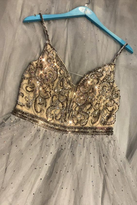 sparkle A-line grey beaded long prom dress formal dress cg19569