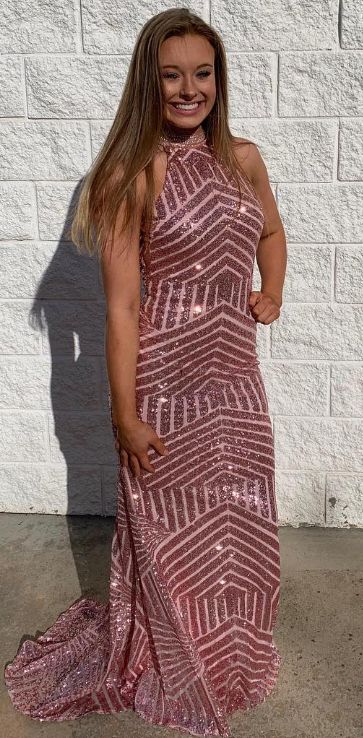 Sparkle Mermaid Rose Gold Sequined Evening Dress, 2020 Long Prom Dress with Train cg6986
