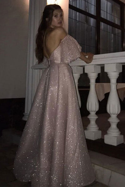 SPARKLE PEARL PINK SEQUINED HIGH SPLIT A-LINE PROM DRESS WITH BRACELET SAS45