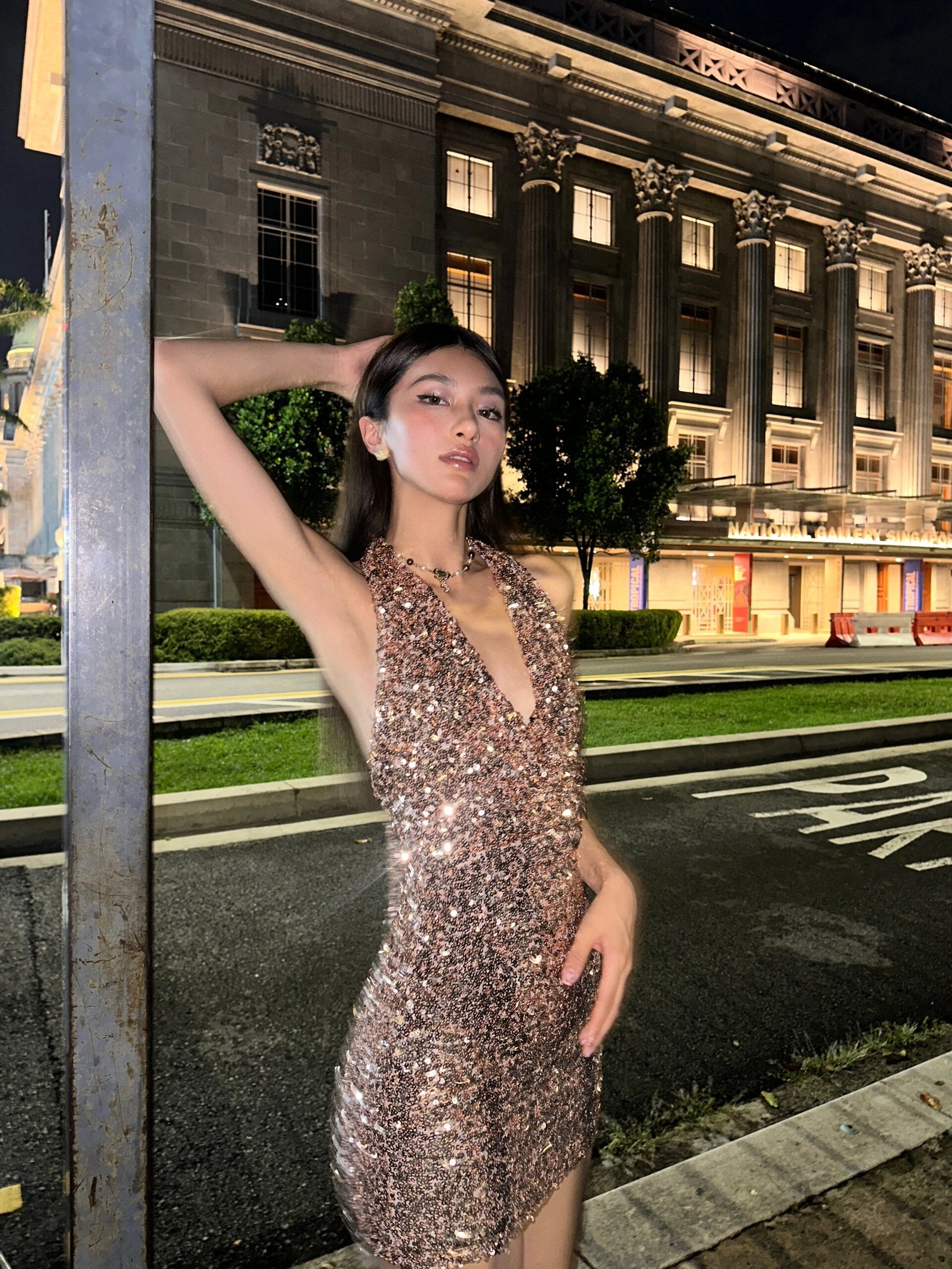 Sparkling Halter Sheath Sequin Short Evening Gowns, Champagne Gorgeous Homecoming Dress ED03298
