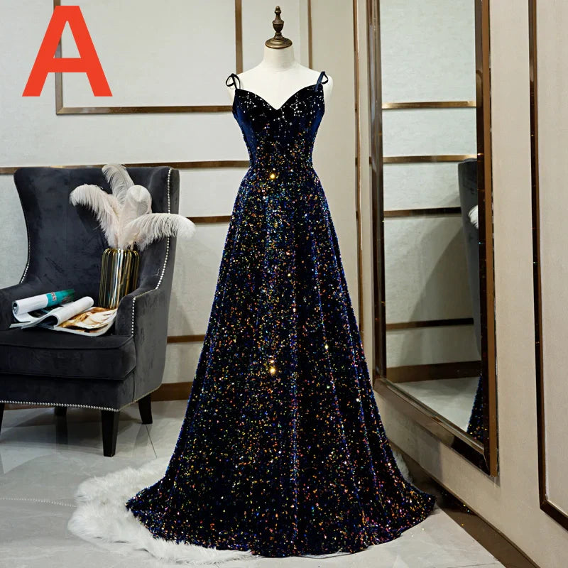 Black Fashion Elegant Shiny Sequin Long Ball Gown Evening Dress Party Dress 8205