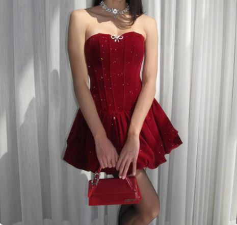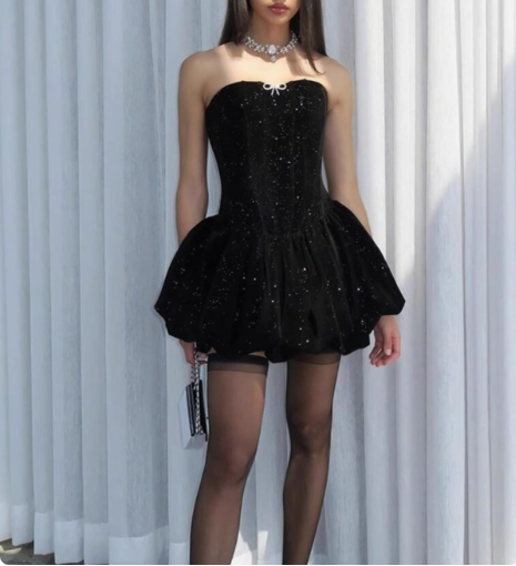 Sparkling Strapless Black Sequined Princess Mini 17th Birthday Homecoming Dress P3524