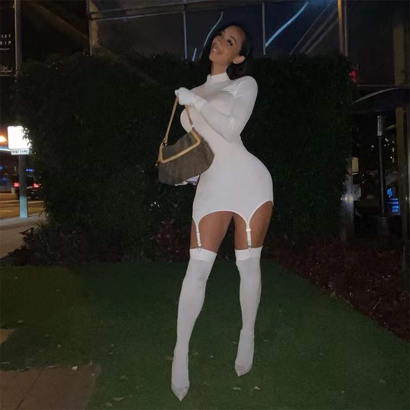 loveedsTM- Spring Sexy Party Mini Dress With Stocking Women Elegant Evening Dress Female Casual Bodycon Dresses Vintage Black White