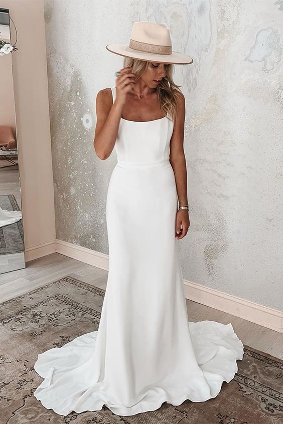 Square Neck Simple Mermaid prom Wedding Dress Backless Bridal Gown cg5187