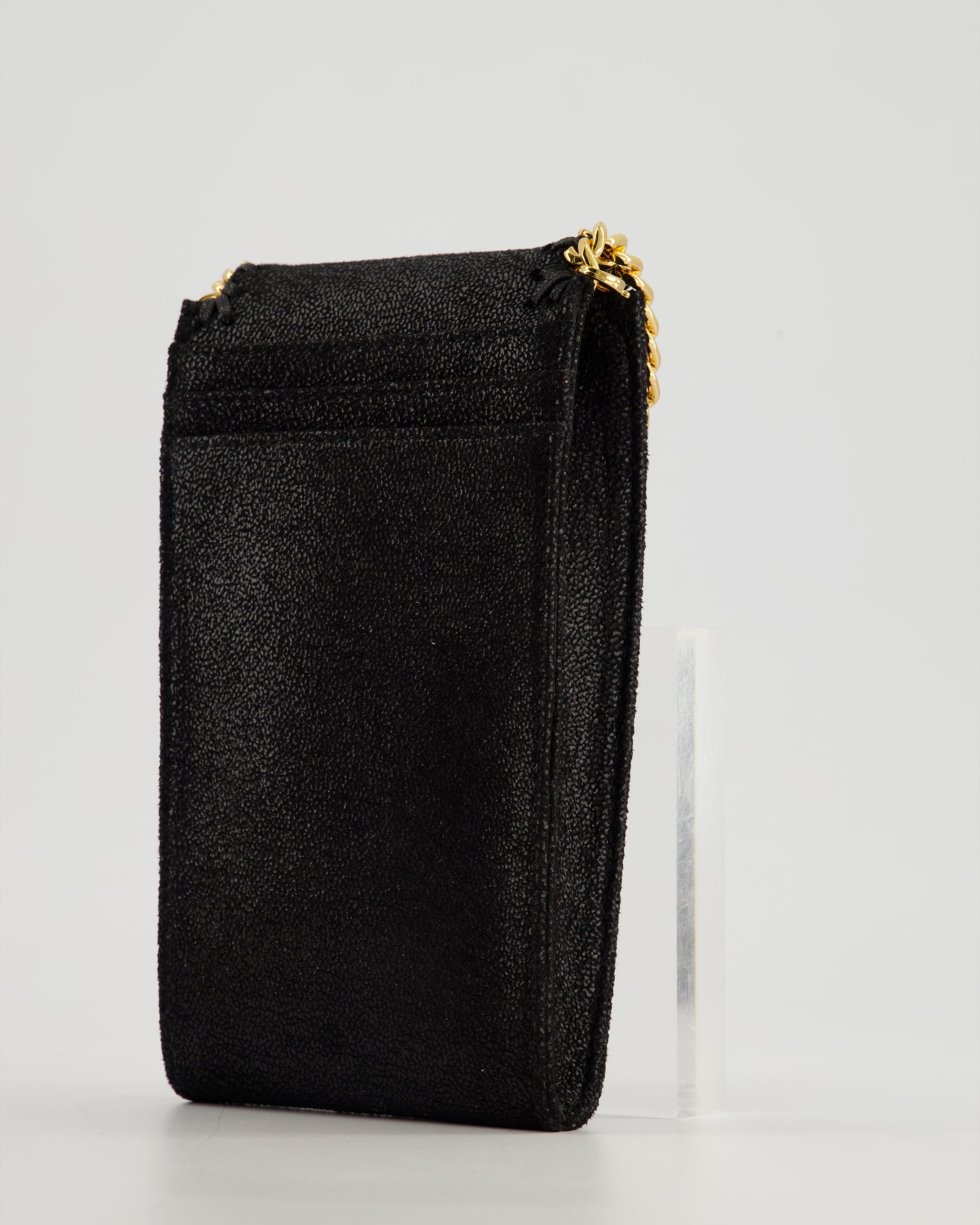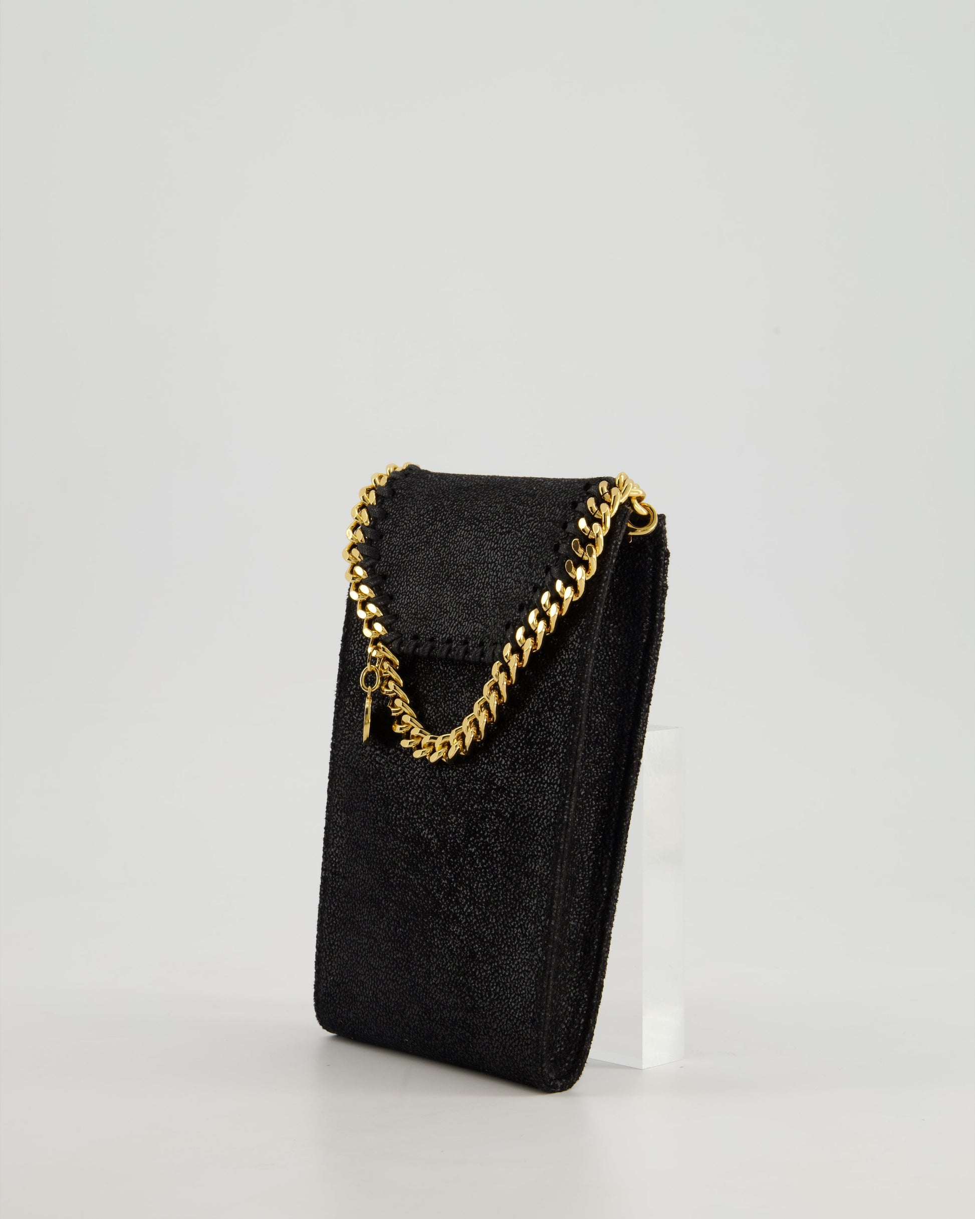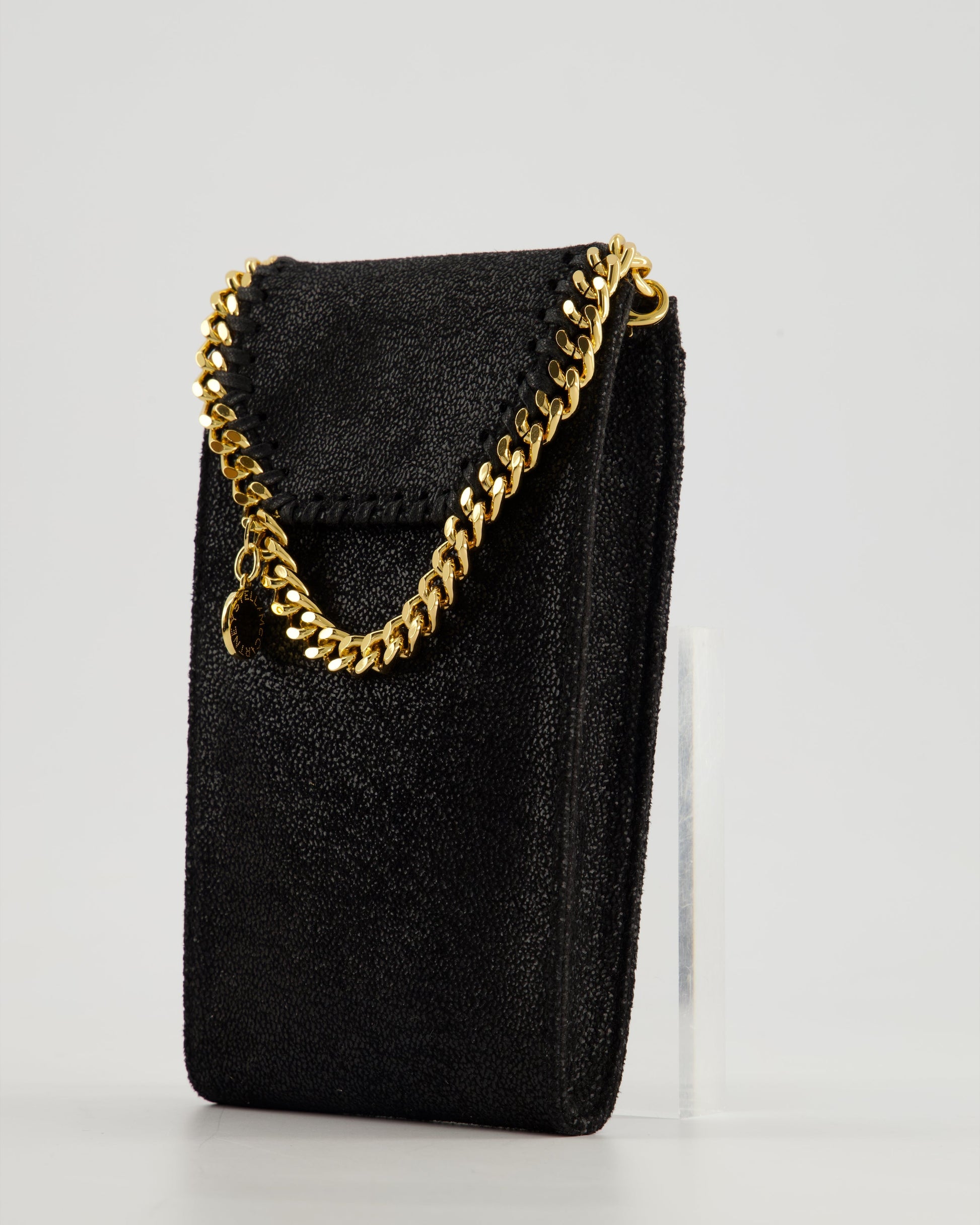 Stella McCartney Black Vegan Leather Falabella Cross-Body Phone Pouch with Gold Chain Detail