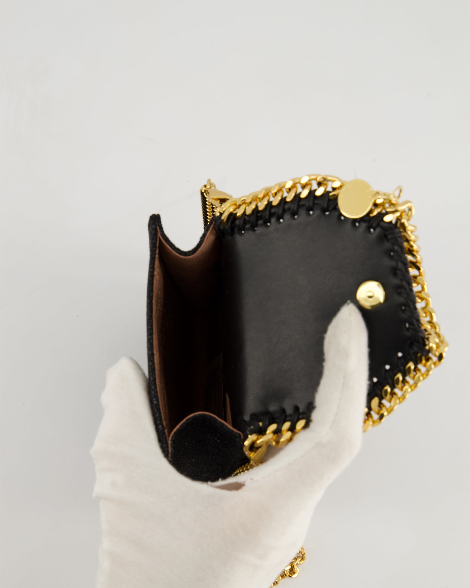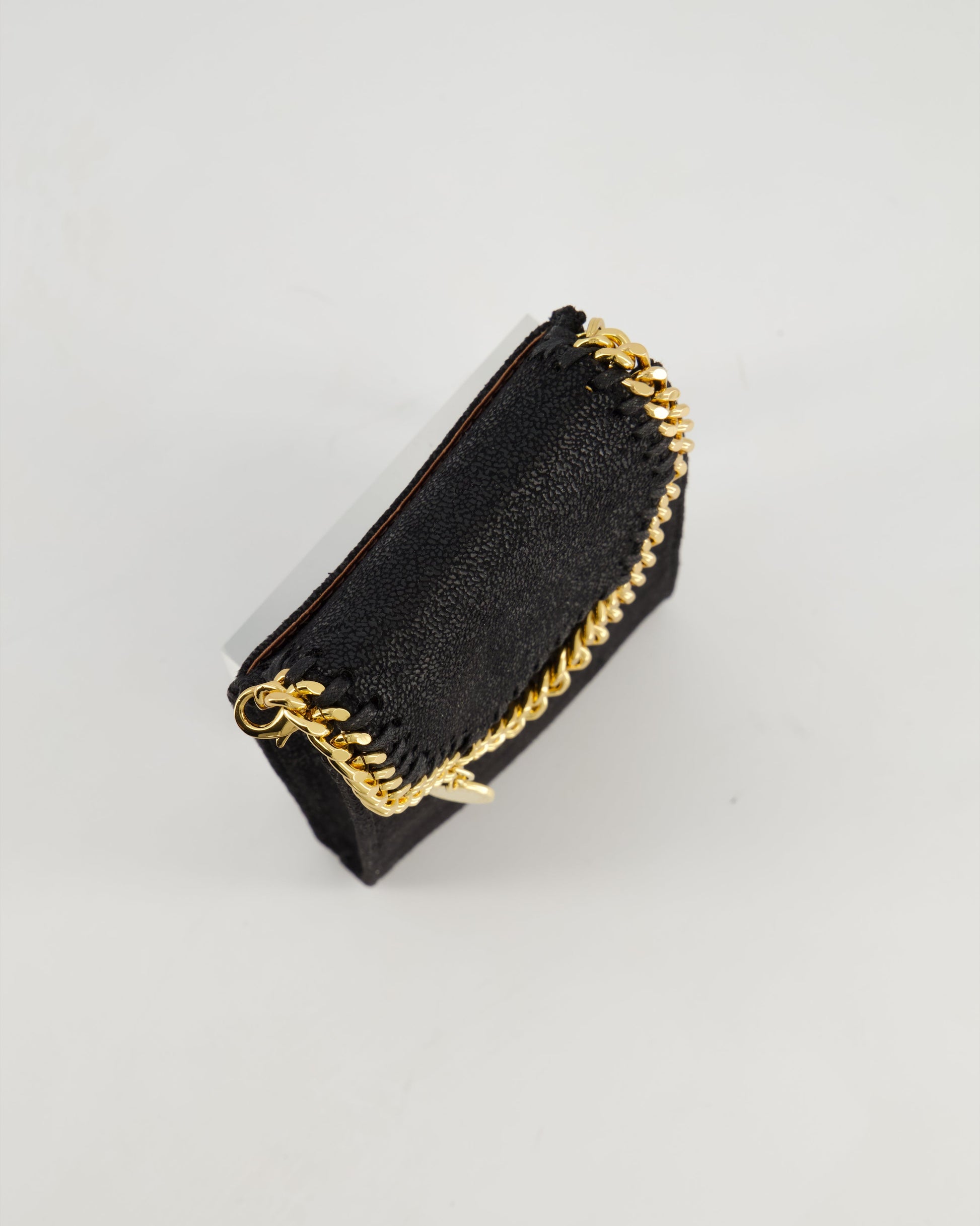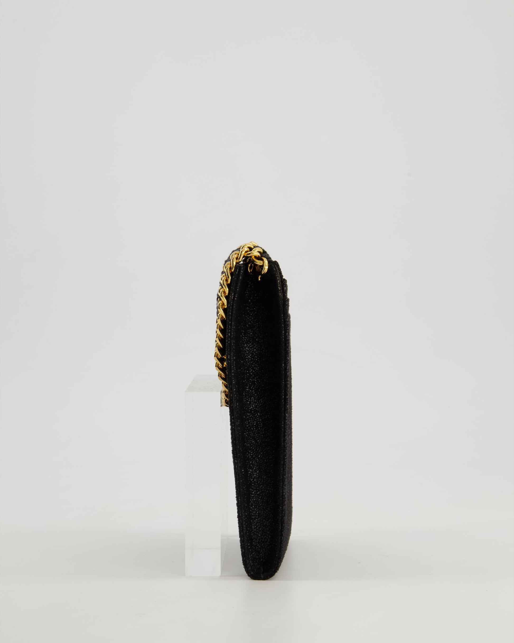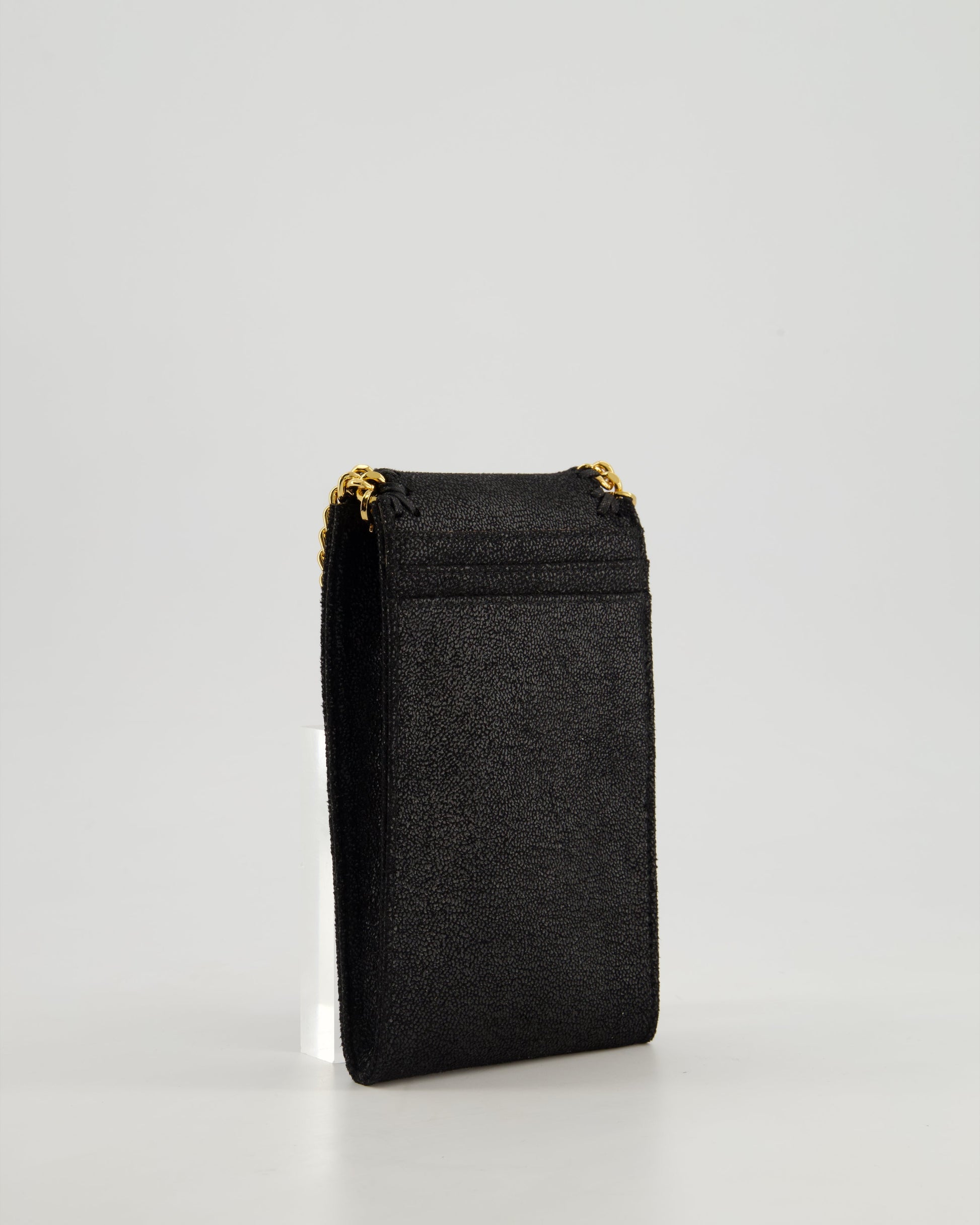 Stella McCartney Black Vegan Leather Falabella Cross-Body Phone Pouch with Gold Chain Detail