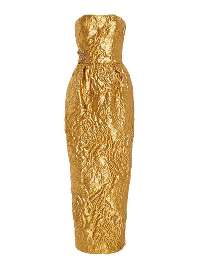 Strapless Lurex Rose Jacquard Cocktail Dress