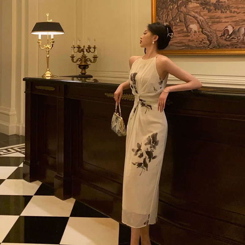 Stunning A Line Halter White Chiffon Date Night Dress Prom Dresses Birthday Outfit SD850