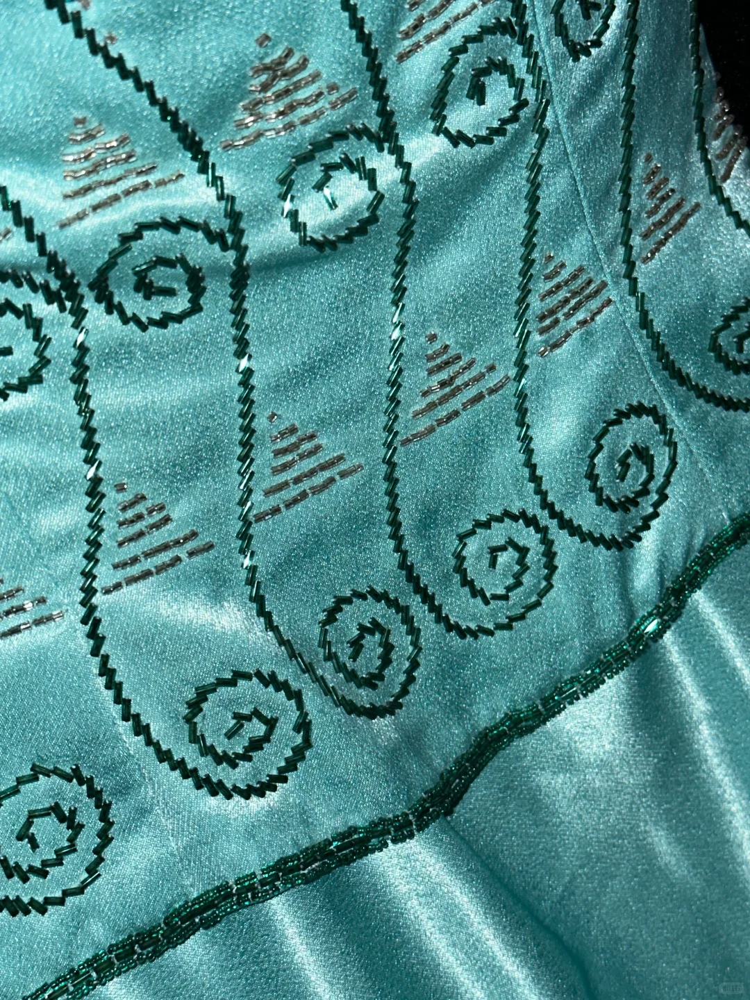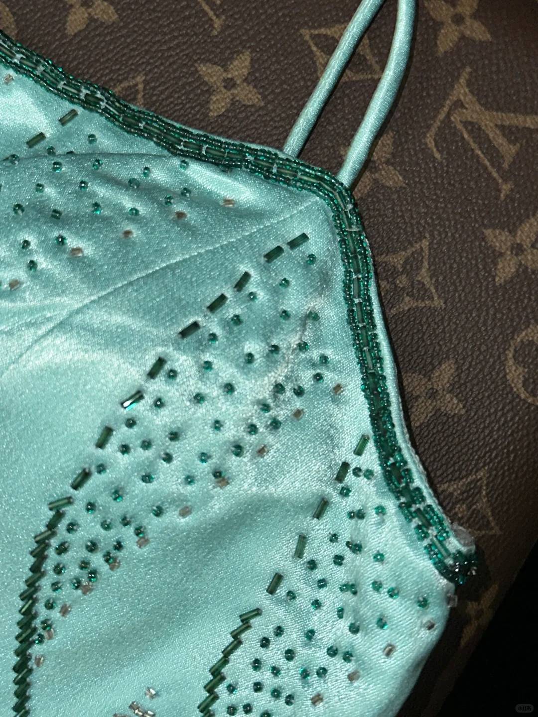 Stunning A Line Spaghetti Strap Beaded Blue Satin Long Prom Dress Party Dress SH3076