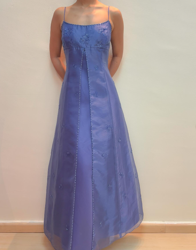 Stunning A Line Spaghetti Strap Beaded Purple Tulle Satin Prom Dress Evening Dress SH2223