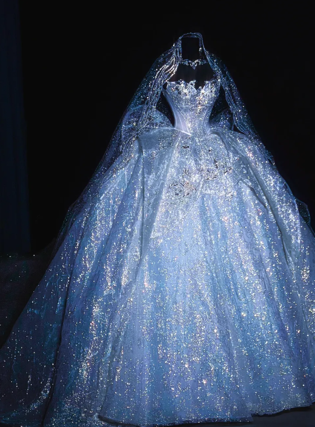 Stunning Ball Gown Strapless Rhinestone Sequin Tulle Long Prom Dress SH3242