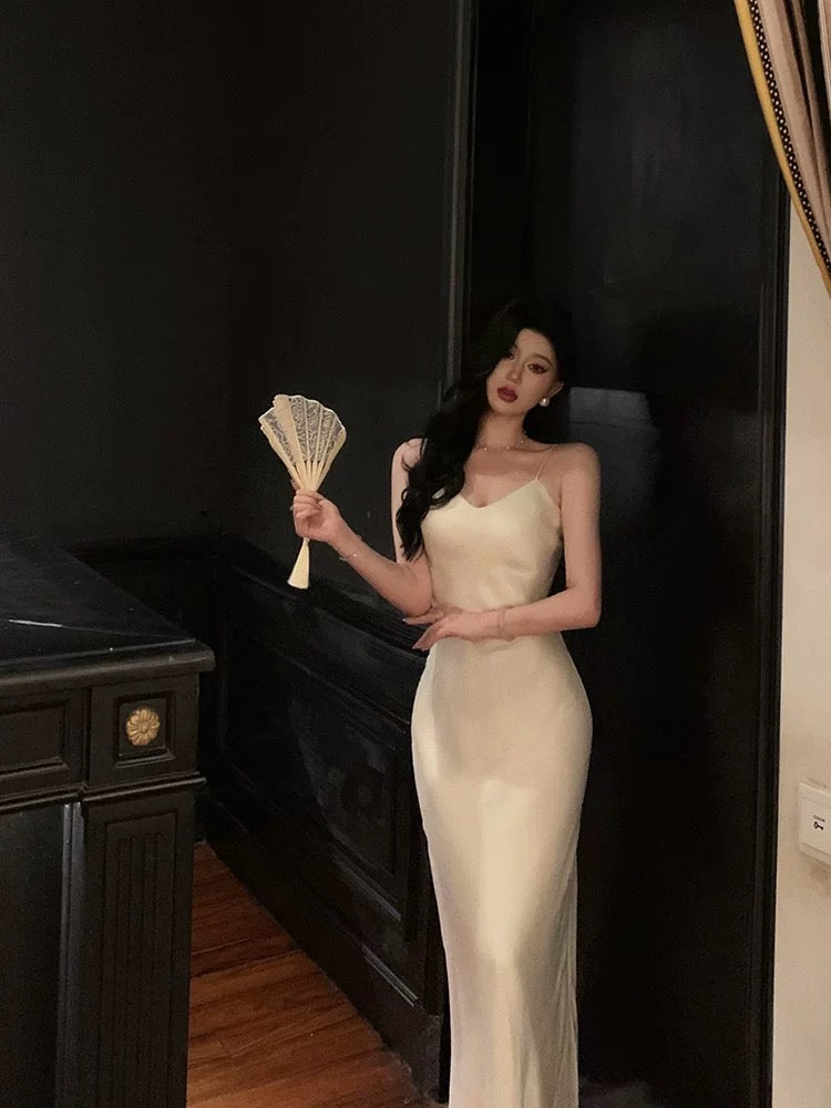 Stunning Mermaid Spaghetti Straps White Date Night Dress Prom Dresses Birthday Outfit SD835