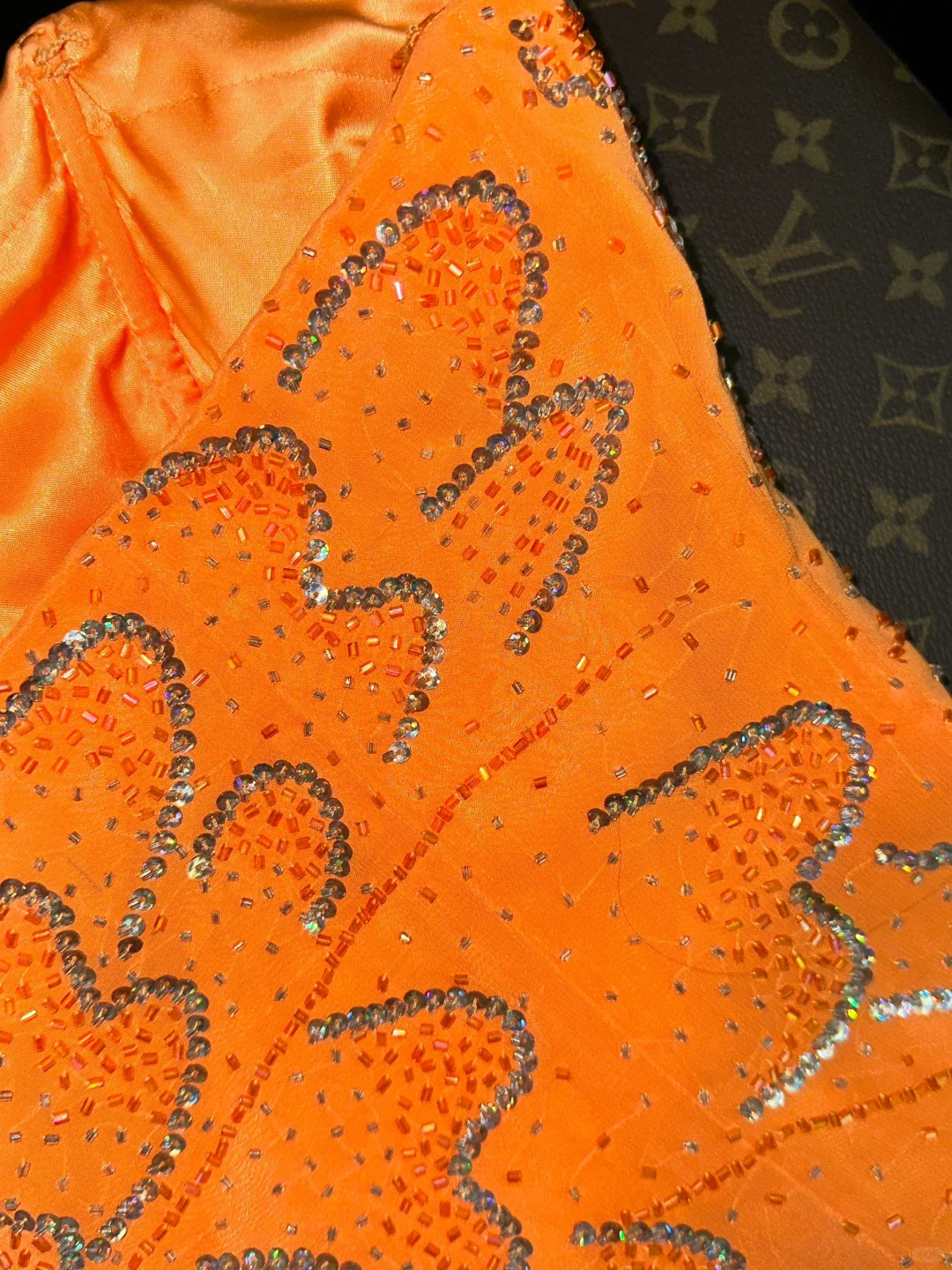 Stunning Mermaid Strapless Beaded Sequin Orange Chiffon Long Prom Dress Party Dress SH3043